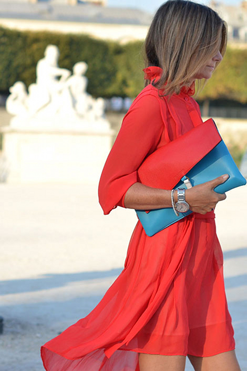 En otros casos, un detalle de color en un look monocromático, levanta el espíritu más conservador y sirve para realzar las formas y crear relieves en piezas de líneas simples.