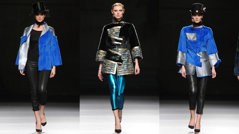 The most amazing interpretation was the Steam Punk inspired collection of Jesús Lorenzo for Groenlandia. He presented multicolour treated furs, in patchwork, for a young and daring spirit. The furrier mixed pieces more traditional, with others quite transgressive, approaching the firm to a younger target or to a woman who loves not only deluxe but punk touches, with Mad Max and Blade Runner references, in a virtual scene.