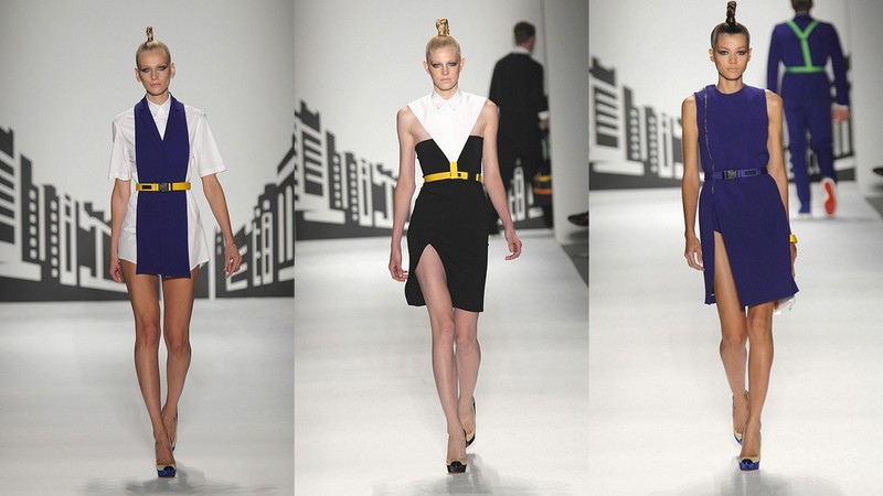 This is a quite retro inspired collection also presented in New York. He used Louboutin shoes as he did before, and also geometric prints mixed with yellow, fuchsia and grey.