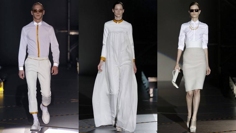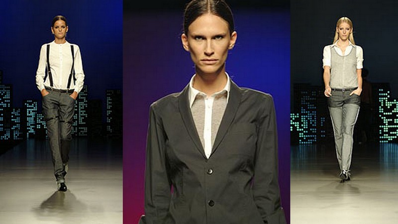 TAUTOLOGY SS 2011: Es la última colección presentada en NY además de en Cibeles. En Cibeles empleó otra música y escena, menos aséptica que la de NY, recurriendo a un pasillo de focos y a la canción “Each man kill the thing he loves” que cantara Jeanne Moreau en Querelle, pero que aquí interpreta la versión cabarét de Ingrid Caven y que como ya he comentado, presentó estampada en jerseys en su coleccion Dual en 2008.