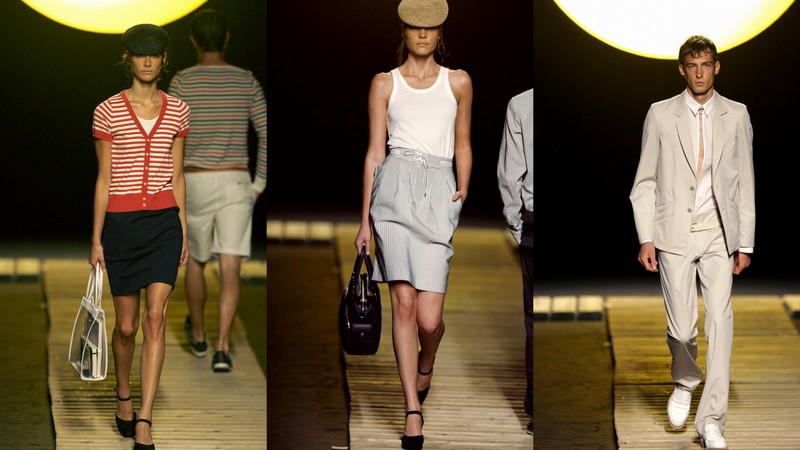 DAFO SS 2007: Aquí aparecen sastres masculinos a modo de lienzos en blanco sobre los que se salpican pinceladas de colores, como si fuera la bata de uniforme de un pintor  cuidadosamente manchadas. Además del blanco nuclear, se presentan rayas marineras en distintos tonos, bajo un sol gigante que presidía la escena y sobre una pasarela de tablillas de madera.