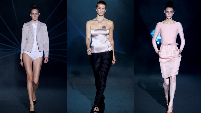 Hubo otro desfile Diastema“, para la primavera-verano de 2009, que me parece tan revulsivo o más que “Cour des Miracles”, y sin embargo no fue repudiado ni juzgado tan cínicamente. Se recreaba un ambiente hospitalario, y el sonido generaba una neurosis brutal. Al principio sólo el sonido de un débil latido, rompía el silencio, para después machacar con el molesto pi- pi- pi de una máquina de oxígeno (hacia la mitad del desfile), y la simulación de la reanimación de un corazón. El refuerzo visual se producía con los tubos de respiración que llevaban en la nariz los modelos a modo de complemento.