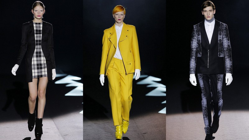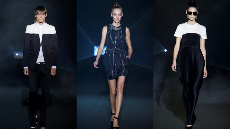 El patronaje clásico con algún giro como los pantalones de corte slim y los remates en los bajos con cuellos de camisa; el uso de pajaritas o cremalleras; las corbatas integradas en las prendas;  la deconstrucción de piezas refusionadas en otras distintas según la perspectiva; el código en blanco y negro agredido por algún tono neutro; los chalecos; las prendas de una pieza que la ilusión óptica hace que parezcan dos; la verticalidad; la androginia; el guiño militar; la dualidad; la austeridad; el minimalismo; los modelos anónimos; los fragmentos antitéticos y ambigüos; el imaginario surrealista; la dimensión onírica y  las referencias autobiográficas, simplemente, por citar una pequeña parte, es lo esencial.