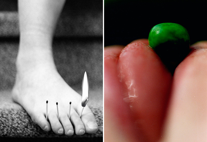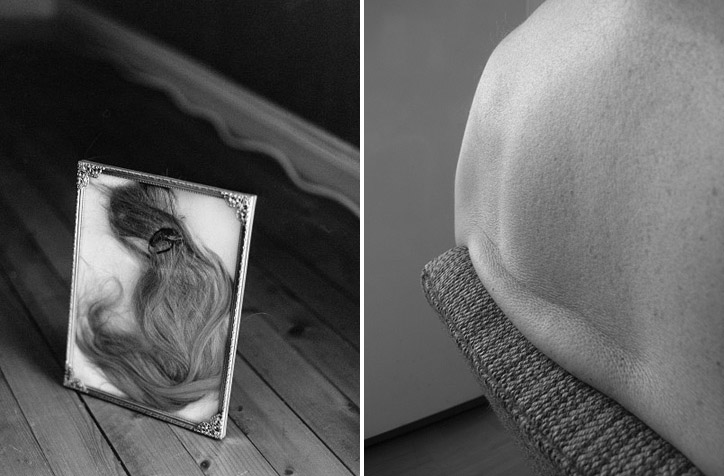 Tautology is also present, when the photographs are referenced to themselves introducing us in a spiral that gets us more deeply in the picture. You don’t want to miss a thing, as every detail is thought objectively, but they also include an abstract feeling very moving that you might not understand in the first place – so you have to go through the images over and over again, to detect that particular nature of things displayed on several levels. Capturing feelings and significance in addition to the form of the subjects she represents is a constant, it can either reflect an absence or a presence, familiarity or strangeness. Quotidian scenes, surreal nature, detached parts of the human body and organic elements are present in these slides of life that intrigue us and lead us to see something else in them.